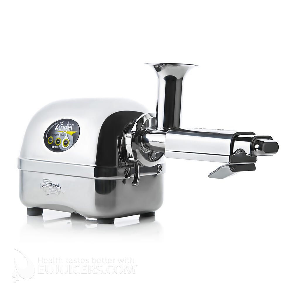 Der Angel Juicer 5500 ist das Basismodell unter den drei Angel Juicer Modellen. Der in Handarbeit gefertigte Horizontal-Entsafter verfügt über einen kraftvollen Industriemotor mit 3 PS und liefert dank seiner Zwillings-Presswalzen besonders vollmundige, vitalstoffreiche und farbintensive Säfte. In unseren Tests schneidet der Angel Juicer in Sachen Saftausbeute immer als Testsieger ab. Obstsaft, grüner Saft, Kräutersaft, Selleriesaft und Gemüsesaft, all das entsaftet der Angel Juicer 5500 mit Bravour. Der Angel Juicer ist eine der wenigen Saftpressen, die nahezu vollständig aus Edelstahl besteht. Mit seinem zeitlosen und edlen Design wird er auf jeder Arbeitsplatte zum absoluten Hingucker.