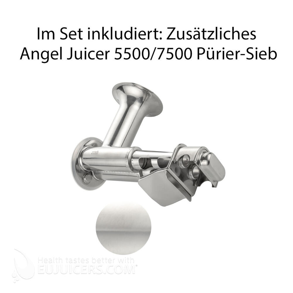 Angel Juicer 5500 Set Angebot = Angel Juicer 5500 + Pürier-Sieb grob (Mahlvorsatz) zum schonenden Pürieren für Babynahrung, Sorbets, Saucen, Hummus...