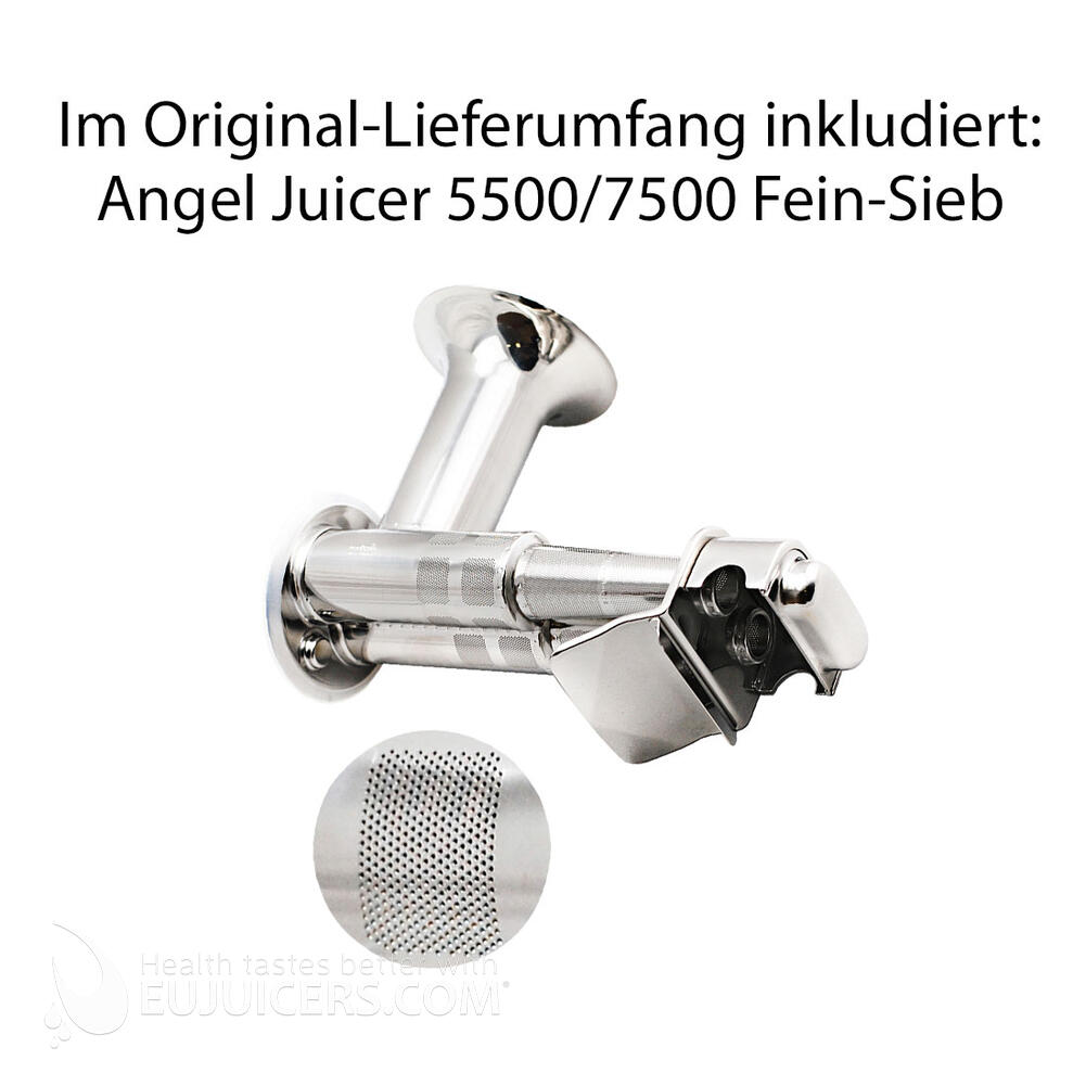 Das feine Sieb ist das Universal-Sieb, welches bereits zum Lieferumfang des Angel Juicer 7500 gehört. Es eignet sich zum Entsaften von Wurzelgemüse für Gemüsesaft, Staudensellerie für Selleriesaft, Weizengras für grüne Säfte, Spinat für Blattgrünsäfte, Mischsäfte aus weichem Obst und Gemüse. Obstsaft aus hartem und knackigem Obst. Das feine Sieb kommt auch zum Einsatz für die Mandelmilch oder Sojamilch.