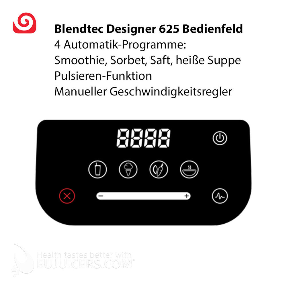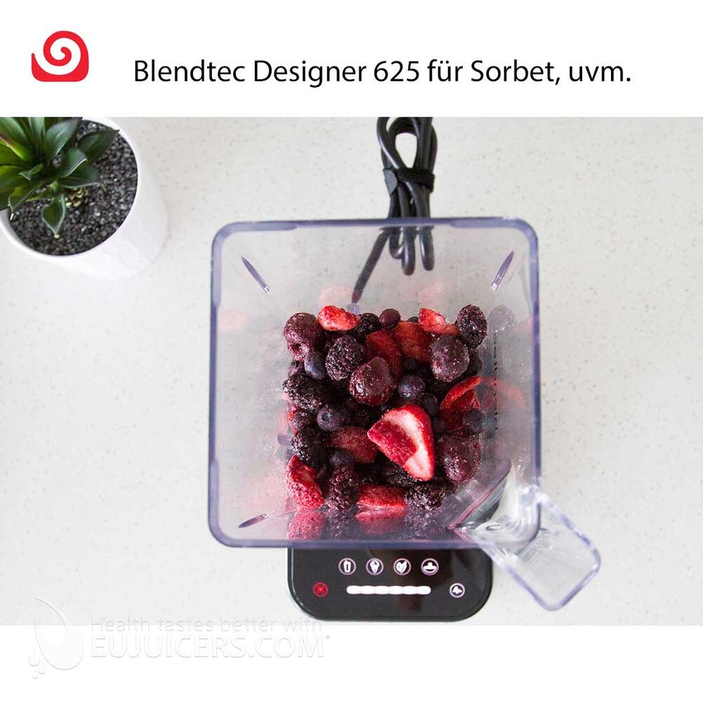 Sie wollen einen Hochleistungsmixer, der jedes Mixgut bei einfacher Bedienung verarbeiten kann und am besten auch noch lange hält? Er sollte auch ein Hingucker in Ihrer Küche sein? Dann ist der Blendtec Designer 625 genau richtig für Sie! Der Blendtec Designer 625 wurde dazu entwickelt, um langlebig eine äußerst kraftvolle Leistung zu erbringen und das in Form eines modernen Designs. Mit ihm können Sie Smoothies, Sorbets, Säfte, heiße Suppen und vieles mehr ganz einfach zubereiten.