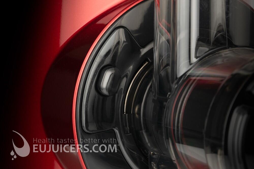 Der bürstenlose Industriemotor kann bis zu 24 Stunden ohne Unterbrechnung am Stück entsaften, so lässt sich literweise frisch gepresster Saft produzieren. Um den Entsafter kompakter zu gestalten, wurde der Motor vertikal positioniert und ein langlebiges Getriebesystem verbaut, um einen horizontalen Betrieb in einem vertikalen Formfaktor zu ermöglichen.